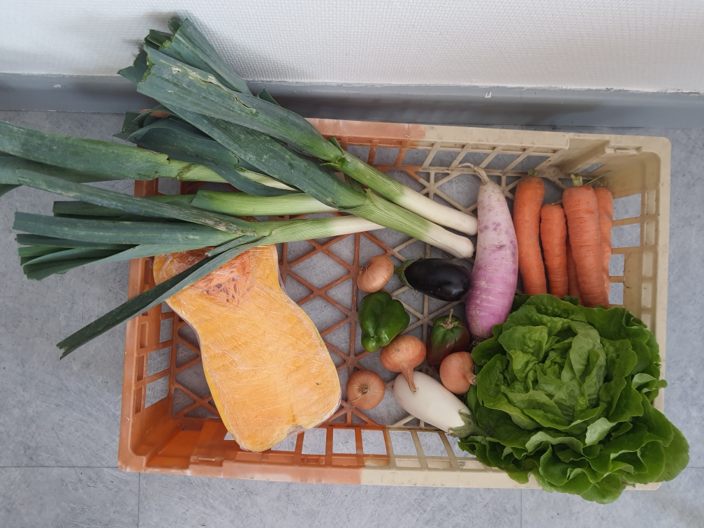 Production de ce jour ! En adhérant à notre association, vous pourrez, en plus d’acheter de beaux paniers de légumes, soutenir notre support d’activité « maraichage » ! Et en plus, c’est bio ! N’hésitez pas à nous contacter pour plus d’information.